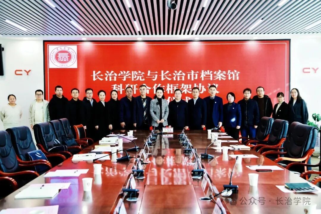 10 月 27 日下午,我校与长治市档案馆科研合作框架协议签订仪式在南校区2号会议室举行。校党委委员、副校长王志军出席活动。长治市档案馆馆长谢惠兰、副馆长陈虹,相关科室负责人、业务骨干,与我校科研部、历史与旅游管理系班子成员及教师代表参加会议。