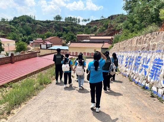 启动仪式后,实践队员们随即开展走访调研。七月流火,热浪翻涌,实践队员们无惧酷暑炙烤,汗水浸润衣背却脚步铿锵,在这片红色热土上的留下青春足迹。