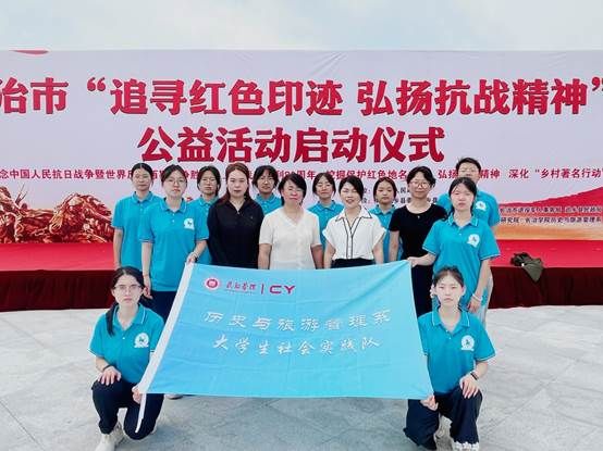 今年是中国人民抗日战争暨世界反法西斯战争胜利80周年,,2025年7月3日,由长治市人民政府主办,中共武乡县委、武乡县人民政府协办,中国地名文化遗产保护促进会、长治市民政局、长治市退役军人事务局、武乡县民政局、武乡县退役军人事务局、长治市三晋地名文化研究院、长治学院历史与旅游管理系承办的长治市“追寻红色印迹 弘扬抗战精神”公益活动在武乡县八路军烈士陵园正式启动。作为活动的参与者,在我系副主任(主持工作)赵艳霞、系党委副书记郭海霞及指导教师姚瑶、王婧带领下,10名队员奔赴武乡县开启重走红色足迹、追溯红色记忆、访谈红色人物、调研红色地名等暑期社会实践活动。