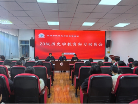 为进一步夯实历史学专业学生实践基础,明确实习目标与任务,强化专业素养与职业认知,我系于2026年3月8日召开2023级历史学专业教育实习动员大会。系党委书记张朝阳、系副主任(主持工作)赵艳霞、系副主任郭白晋、历史学教研室实习指导教师及2023级历史学专业全体同学参会。