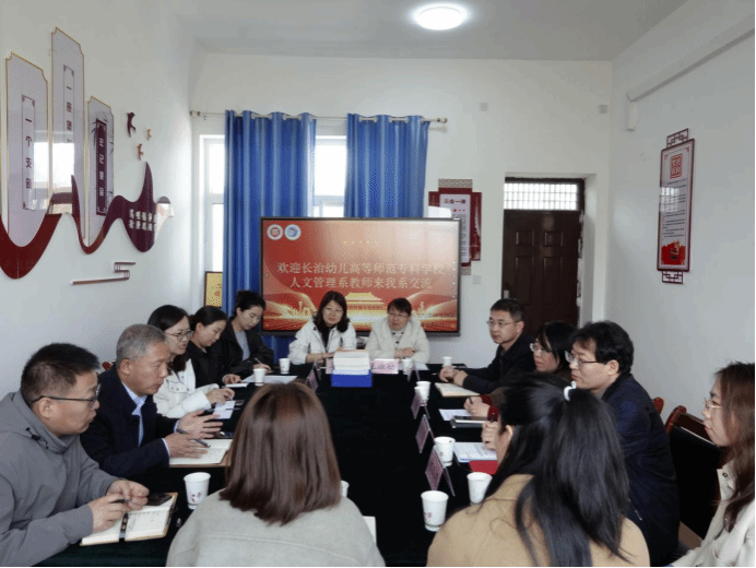 2026年3月31日,长治幼儿师范高等专科学校人文管理系、外语系教师一行7人,在系主任李荣先、郭薇的带领下,莅临我系进行考察交流。我系党委书记张朝阳、系副主任(主持工作)赵艳霞、系党委副书记裴斐、系副主任郭白晋及相关教师代表参与了此次交流活动。